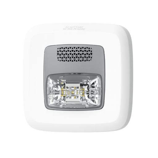Low Frequency Horn/Strobe, Fixed 177 Candela, Wall Mount, Temporal 3 Sounder, Temporal 4 Capabilities, PLAIN (no lettering), White Faceplate