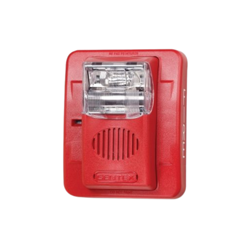 (904-1143-002) Horn/Strobe, Fixed 177 Candela Strobe, Wall Mount, Red Faceplate