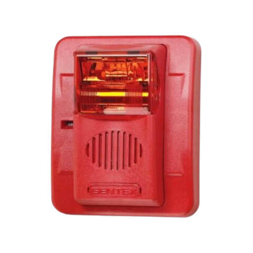 (904-1327-002) Horn/Strobe, Amber Lens, Selectable Candela Strobe, Wall Mount, PLAIN (no lettering), Red Faceplate