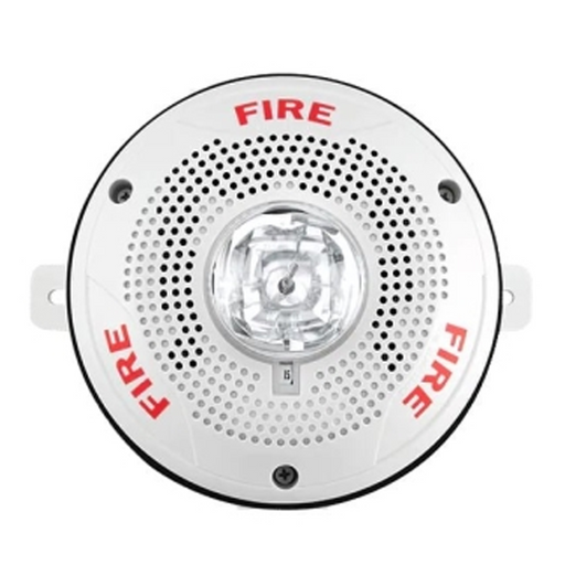 Speaker/Strobe, 25 or 70.7 VRMS, Selectable Candela, Ceiling Mount, FIRE Text, White Faceplate