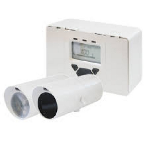 End to End beam smoke detector, 16.5ft to 393ft (5m to 120m), System includes one transmitter, one receiver and one control unit. Kidde branded.