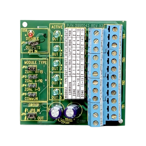Remote Relay Module, 5 Form C contacts, jumper selectable operation, includes mounting track.