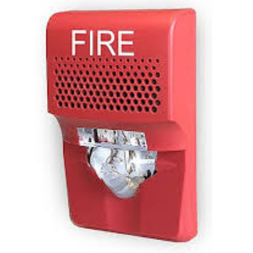 Wall Speaker/Strobe, 15-110cd, Red, FIRE Marking. Room Side Wiring Plate included