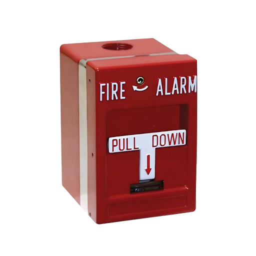 Fire Alarm Pull Station, Non-coded, Break glass, Plastic, Single Action, Single pole, Open Circuit, Wire Leads, Key Reset.