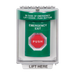 The Stopper Station pneumatic push button is designed for reliable emergency exit and security applications. It features a flush-mounted Universal Stopper protective cover and a curved housing with raised EMERGENCY EXIT messaging to help prevent accidental activation. The unit operates without electricity, using a pneumatic adjustable timer that opens or closes the circuit with a delayed reset. Rated for indoor use only, it supports multicolor LED illumination and provides versatile contact options for integration into access control and security systems.