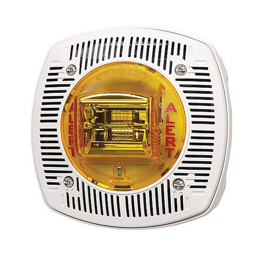 Speaker/Strobe, 25 or 70.7 VRMS, Amber Lens, Fixed 15/75 Candela, Wall Mount, ALERT Text, White Faceplate